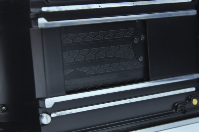 Once the components were glued in position and electrical connections restored, the top half of the casing is readied for re-assembly. Because the 18650 Li-Ion cells are slightly wider in diameter than the NiMH cells, the top half of the casing cannot fit back without removing the sides of the top casing to expose the Li-Ion cells. Once this is done to measurement (and covering the dowels for esthetics), the halves are glued together.